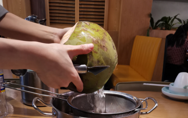 雞選用正宗龍泉文昌雞,椰子選用海南本土新鮮椰青,配上鮮甜爽口的珍珠馬蹄,湯底由龍泉金牌大廚經過反復研究,選定科學方法調配而成,口感清甜、自然。